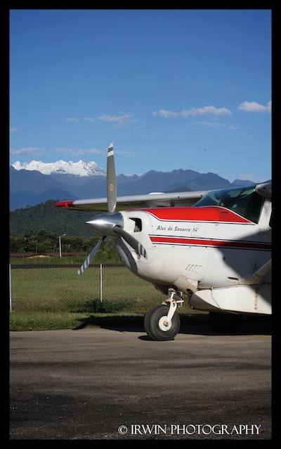 There ended up being a flight for our Radio Technician (Juan) to go fix one of the jungle radios. They took the smaller 4 seat airplane, but there was still room for Josiah. This was the first flight that Josiah has gone on that he didn't fall asleep 10 minutes into the flight! I guess he's growing up. The flight was beautiful with blue skies all the way to their destination. Of course they arrived over the airstrip just as a rain cloud began to dump on the tiny airstrip. After waiting for about 10 minutes they were able to make a slip and slide landing on the 420 meter strip. They spent about an hour fixing the antenna that broke when the pole it was attached to fell in a storm. While they were working on the antenna some folks from the community informed Chad that there was a child with a very bad cut on his foot. It seems he or his friend hit him on the top of the foot with a machete. Ouch! Chad had to do a hop to another longer airstrip to get everyone out, but it was a good thing they were in the community. The boy was losing so much blood that he started passing out on the flight out. We're thankful that God planned the radio repair flight to happen at just the right time for that boy's injury. God is good!